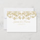 Romantic gold and white damask wedding invitation response card with bride and groom's names and wedding date on reverse side.
