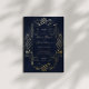 Beautiful gold ornaments paired with a matching gold elegant font on a deep blue background creating a vintage and elegant wedding invitation. Check our store for more matching items.