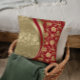 Gold & Deep Red Floral Damask Modern Design Outdoor Pillow