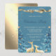 Gold Deer, Blue Pine Trees Christmas Company Party Invitation