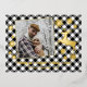 Gold Deer & Snowflakes Black White Plaid Pattern Foil Holiday Postcard