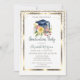 Gold Diamonds,Frame,Floral Grad Cap Graduation Invitation