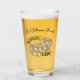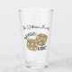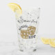 This custom drinking glass features a game night theme. A large image of gold glitter dice is placed in the center. A sample family name is printed at the top which you can personalize to include your own custom name or text. It's perfect for your next bunco party or tournament.