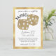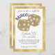 This custom party invitation features a sophisticated game night theme. A large image of gold glitter dice is placed in the center. A gold frame borders the invitation. It's perfect for your next bunco tournament.