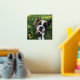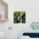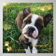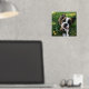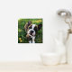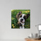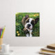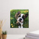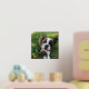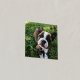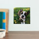 Square photo print with your dog photos inside a sketched frame in gold foil with paw prints. Gold foil dog photo print personalized with your puppy's name.