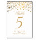 Gold Dots and White - Table Number. ⭐DIRECTIONS TO ADD NAMES/NUMBERS TO CARDS - Step 1 (Click on Personalize this template) add name and /or number on first card then add it to your cart. Step 2 - click on "continue shopping" and it will return you back to the card so you can add the second number and / or name(s) then add it to your cart - Repeat process until all names and/or numbers have been added. Step 3 - Checkout or continue shopping. ⭐This Product is 100% Customizable. Graphics and / or text can be added, deleted, moved, resized, changed around, rotated, etc... 99% of my designs in my store are done in layers. This makes it easy for you to resize and move the graphics and text around so that it will fit each product perfectly. You can also "TRANSFER DESIGN" on other Zazzle products and adjust the design to fit most of Zazzle items. (button is down on the right side of the page) Some of the text graphics have ready to fill in the box(es) or you can Click on the CUSTOMIZE button to add, move, delete, resize or change any of the font or graphics. The design is made with high resolution vector and/or digital graphics for a professional print. ⭐NOTE: (THIS IS A PRINT. All zazzle product designs are "prints" unless otherwise stated under "About This Product" area) The design will be printed EXACTLY like you see it on the screen and on the product...so please make sure when you do your changes on the resizing of any of the graphics or text that it fits in the areas correctly and that your spelling and wording is how you like it to be in size, color and font. If you have any questions about the "DESIGN" or need help please contact me at siggyscott@comcast.net or visit my store link: http://www.zazzle.com/designsbydonnasiggy?rf=238713599140281212 (Copy and Paste) I'll be happy to help. ⭐ All other questions (shipping, refund, the printing, the product, etc...) please contact Zazzle or the Maker ⭐DIRECTLY⭐. Thank you for the support and stopping by my store - DesignsbyDonnaSiggy. © Donna Siegrist