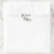 The sticker is made on wonderful paper and had no problem sticking to the bag that I purchased to put it on. I wanted to find a design that would be cute for the bride and groom and this one fit the bill as it has cute "bees" buzzing around and the wedding was taking place in a town called "Bee Cave". The packaging was great and protected the stickers. The website is easy to navigate and there are so many color choices. I had no problem finding a color that the bride was using on everything else selected. The design was adorable and there were many to choose from. You can make the figure as larger or smaller and you can place the photo and writting whereever you want to in the sticker. The printing is fabulous..better than expected.