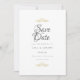 This chic save the date card features gold doves and hearts above and below your save the date details set in classic elegant typography.