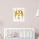 Gold Dragon In The Stars Poster on White Backdrop - In a dark room, a single light illuminates a magnificent golden dragon as it flies majestically in the stars. Printed against a pure white backdrop, this poster is an ethereal addition to any wall. Perfect for anyone who loves dragons, this poster is sure to bring enchantment to your home.