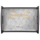 Serves meals or beverages in style with a Gold Dragonfly Damask Personalized Serving Tray. Serving tray design features a colorful dragonfly against an elegant vintage gray damask pattern. Additional gift items available with this design as well as a variety of colors.