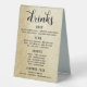 A gold wedding or special occasion bar menu featuring a crinkled gold background with a modern lively calligraphy.