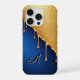 Gold Dripping Paint Over Deep Blue Background iPhone Case