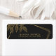 Gold flower and leaf outlines bordered by creative geometric line accents are paired with beautiful handwritten script text and sprinkled with gold dust to form the creative pieces in this elegant wedding suite. This wedding return address label features the above design elements and is easy to customize using the provided template to add your name and address. Search ID835 to see other pieces in this suite.