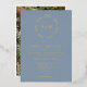 Gold Dusty Blue Wreath Monogram Wedding Foil Invitation