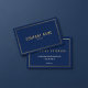 A refined navy blue business card features a slim double gold effect border and centered typography, pairing deep blue with warm metallic tones for a classic, high end look. The minimalist layout keeps the company name prominent on the front and clean contact details on the back, ideal for corporate and professional services. The gold is a printed effect.