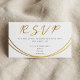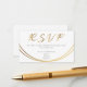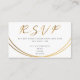 This modern RSVP enclosure card features an elegant gold effect script on a crisp white background, making it a striking addition to any wedding invitation suite. The sophisticated design showcases the word "RSVP" in eye catching lettering, with space to personalize venue, contact, and event details on the back. Perfect for adding a refined, personal touch to your big day, with a stylish look and practical function. Please note the gold effect is printed.