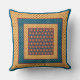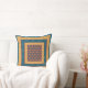 A chic Cushion or Pillow with a mix'n'match pattern of gold-colored horses on a deep red background, teamed with coordinating Polka Dot patterns. The horse motif was painted by hand by Judy Adamson.