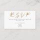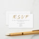 This contemporary RSVP enclosure card features a crisp white background and the word "RSVP" in sophisticated gold effect script, offering a fresh and simple design for modern wedding events. The clear, easy to read format allows you to include important response details, such as venue, contact information, and a personal message for guests and family on the reverse. All text is fully customizable, making it effortless to coordinate with your unique wedding style while keeping guest communication polished and straightforward.