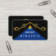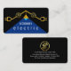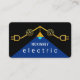 A black cover features a creative faux gold electrical wiring circuit shaped into a rooftop frame. In its circuit you have two electrical symbols with a lampshade casting a beam of blue light. Inside the beam lies your prestigious name with the business name "ELECTRIC" which you can change.