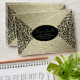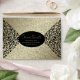This envelope design features a Gold background beautifully accented with an ornate black damask pattern. The intricate floral and heart motifs create a luxurious and dramatic effect, while the dark tones bring out a sense of sophistication and mystery. The central area is kept clean for customizable text, framed elegantly by the rich ornamental design.