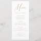 Modern menu script minimalist design in gold and white, simple and elegant. Great wedding menu cards for modern wedding and other events.