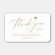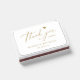 Modern thank you script and gold heart, minimalist design with couple names and wedding date in gold and white, great personalized wedding matchboxes favors.