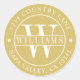 CHANGEABLE BACKGROUND COLOR. Gold and White Elegant Monogram Round Return Address Sticker.