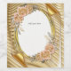 An elegant gold card with flying turnoff gold corners and gold cream roses for a chic wedding or any other event card design to personalize