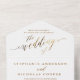 A beautiful wedding invitation featuring an elegant script design in gold.