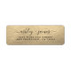 The gold elegant wedding return address design features a soft metallic gold background paired with graceful black script, creating a warm and refined look for your wedding stationery. This personalized return address style adds an elegant finishing touch to envelopes for save the dates, invitations, and thank-you notes. Its calm, modern typography and rich gold tone make it a beautiful choice for couples seeking a timeless, polished aesthetic.