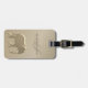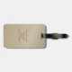 Elegant and stylish luggage tag featuring a metallic gold elephant design on a sandstone beige background. Personalized with a modern calligraphy monogram and full name, this chic travel accessory is perfect for safari lovers, business travelers, or as a unique gift for Father's Day, graduation, or groomsmen.