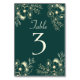 Guide your guests in style with this elegant wedding table number card featuring a rich emerald green background, delicate gold floral illustrations, and timeless serif typography. Perfect for formal receptions, winter weddings, or luxurious emerald and gold themes, this card pairs beautifully with gold frames and candlelit tables. Fully customizable for your table numbers or signage—ideal for chic, classic, or vintage-inspired wedding decor.