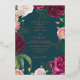 Are you planning a romantic, rustic, country or barn wedding? The emerald green background brings out your details in gold and flowers in red and pink. The watercolor floral greenery white flowers give your wedding invitations a special shine