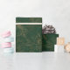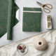 Repeating floral pattern featuring gold line-drawn flowers on artisan green background.