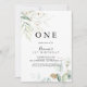 Gold Eucalyptus Calligraphy First Birthday Party Invitation