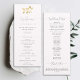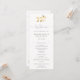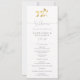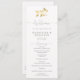A graphite sketch of a branch of eucalyptus foliage, layered digitally with gold, decorates this elegant, black and white and gold, simple, classy and modern wedding ceremony program that is perfect year round, in the summer, spring, fall or winter. It features modern, elegant script calligraphy with ample flourishes. Luxurious but simple, classic but chic, modern but timeless. A lovely choice for a couple getting married in any season who likes the aesthetic of black and white art for the wedding stationery, black and white and gold, botanical simplicity and eucalyptus foliage.