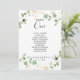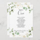 This gold eucalyptus table number 1 seating chart is perfect for a rustic wedding. The design features watercolor eucalyptus green foliage with gold confetti.