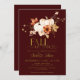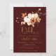 Gold Fall In Love Burgundy Pumpkin Bridal Shower Invitation. Rustic and elegant bridal shower invitation featuring hand painted watercolor white pumpkins, fall leaves and flowers with golden "fall in love" wording and burgundy red background. Please get in touch via chat if you need customization or matching items.