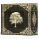 An antique gold look genealogy album featuring a family tree design in gold and brown colors. Art by Amelia Carrie