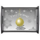 Serve meals or beverages to family or guests this holiday season with this Gold Fancy Christmas Ornament Serving Tray. Tray design features a gold fancy ornament against a gray gradient background adorned with falling snowflakes. Additional gift and holiday items available with this design as well.