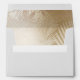Elegant "save the date" envelopes with handwritten script on the back flap and your return address in sans serif font. Inside is lined with beautiful tropical foliage illustrations in different faux foil colors and backgrounds.