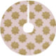 Tree skirt with gold faux glitter snowflake pattern on a light pink background. Elegant playful design for Christmas season that creates a festive atmosphere for the holidays.
