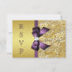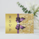 Gold Faux Sequin Diamonds Purple Bow RSVP Card