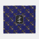 Gold faux sparkles Anchor pattern navy Monogram Fleece Blanket