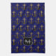 Gold faux sparkles Anchor pattern navy Monogram Kitchen Towel
