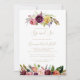 This gold feather boho tropical sip and see invitation is perfect for a modern meet the baby party. The design features hand-painted brown wild feathers, boho yellow, white, purple, pink, blush, burgundy flowers and blue berries neatly arranged into beautiful bouquets.