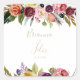 These gold feather boho tropical wedding envelope seals are perfect for a modern wedding. The design features hand-painted brown wild feathers, boho yellow, white, purple, pink, blush, burgundy flowers and blue berries neatly arranged into beautiful bouquets.