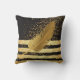 Gold Feather on Gold Confetti and Stripes Throw Pillow