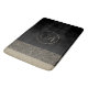 A three tone sleek design created with a black backdrop for contrast and little gold feathers as the second layer and the third is a glittery gold border where on top you can personalize it with a letter or logo to make it uniquely your own. Stylish elegant vibes