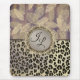 Gold Feathers with Leopard Print Monogram Mouse Pad
